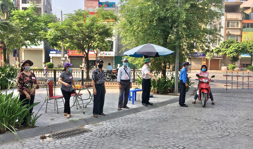 Một tổ kiểm soát Covid-19 cộng đồng đang làm nhiệm vụ trên địa bàn phường Tương Mai.