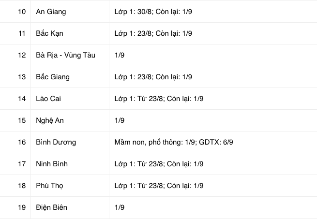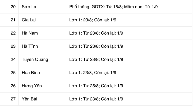 Cập nhật: Lịch tựu trường của học sinh 27 tỉnh, thành