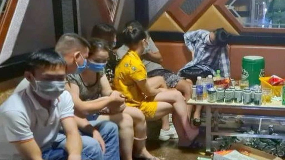 Thời điểm lực lượng chức năng ập vào, trong phòng có 13 khách đang ngồi uống bia, hát hò, không duy trì khoảng cách, vi phạm nghiêm trọng các quy định về phòng dịch.
