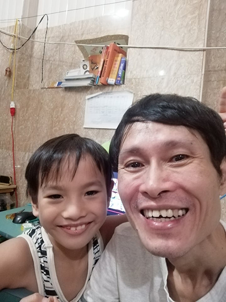 Anh Nguyễn Thế Hùng khi mới xuất viện, vui vẻ cùng con trai. Ảnh: Nhân vật cung cấp.