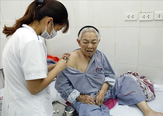 Điều dưỡng chăm sóc điều trị cho người cao tuổi bệnh nặng tại khoa Lão - bệnh viện Đa khoa Đống Đa. (Ảnh: TTXVN)