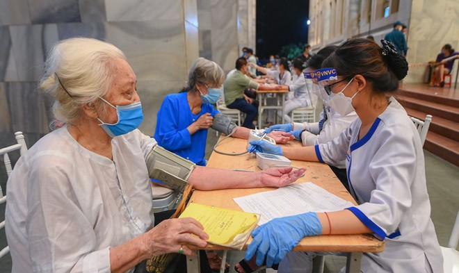 Một người dân được khám sàng lọc tại Hà Nội trước khi tiêm vaccine Covid-19. (Ảnh: zing.vn)