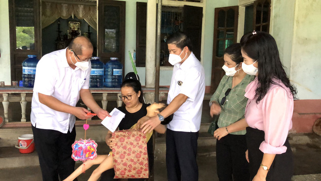 Lãnh đạo Sở LĐ-TB&XH tỉnh Thừa Thiên Huế cùng lãnh đạo thị xã Hương Thủy thăm, tặng quà Trung thu các cháu thiếu nhi có hoàn cảnh đặc biệt tại thị xã (Ảnhr: Báo dansinh)