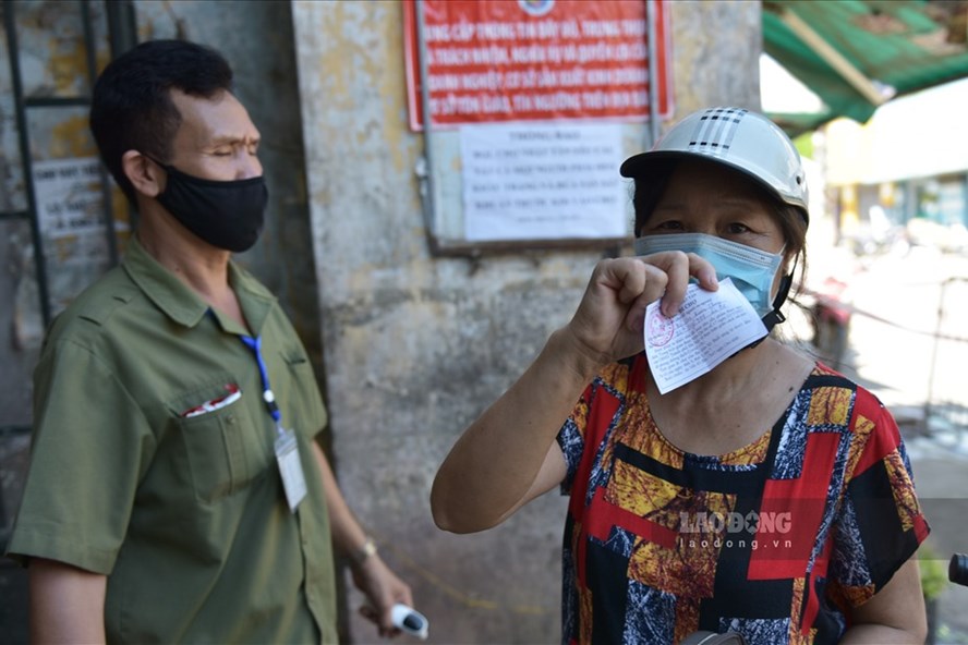 Nhiều phường trên địa bàn Hà Nội phát phiếu ra đường, phiếu đi chợ cho người dân trong thời gian giãn cách xã hội. Ảnh: Laodong.vn