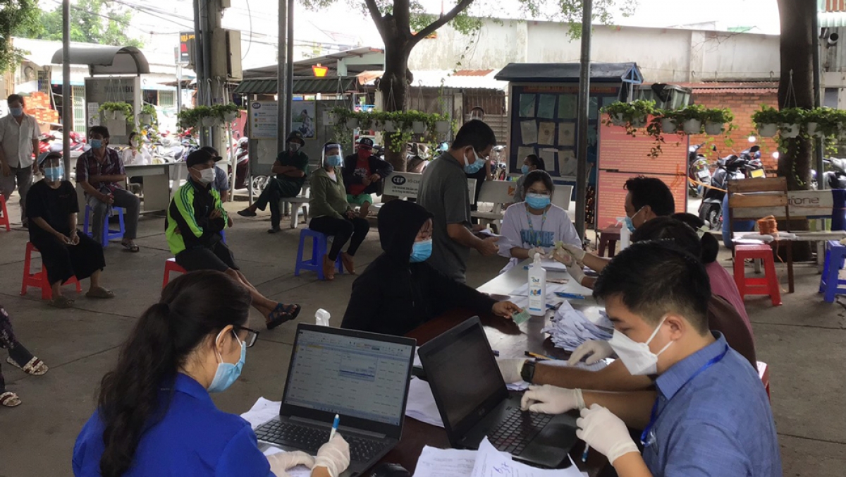 Cụ thể, đối với shipper lưu thông trong thời gian giãn cách ở 8 quận, huyện vùng đỏ (TP Thủ Đức, quận 8, 12, Gò Vấp, Bình Tân, Bình Thạnh, huyện Bình Chánh, huyện Hóc Môn) phải đảm bảo đã được tiêm ít nhất một mũi vaccine và được test nhanh hàng ngày (mẫu gộp 3) từ 5 đến 6h. Việc này được thực hiện, giám sát bởi lực lượng quân y ở các trạm y tế lưu động của 312 phường, xã.