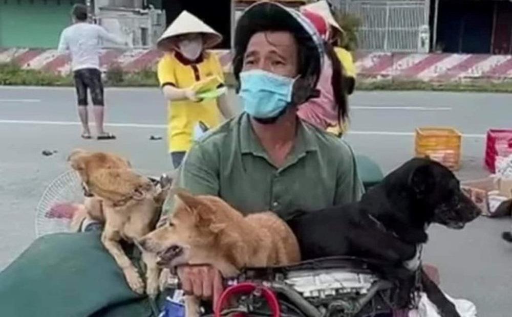 Ông N.D.Kh và bầy chó trên đường hồi hương. Ảnh: Facebook