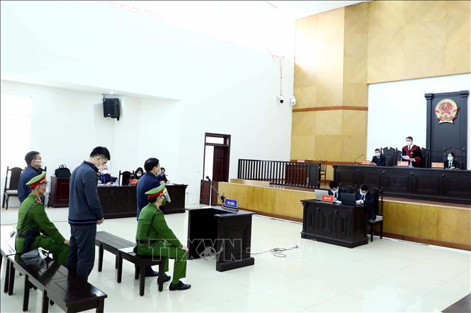 Các bị cáo nghe Thẩm phán, Chủ tọa Phiên tòa tuyên án. Ảnh: Phạm Kiên/TTXVN.