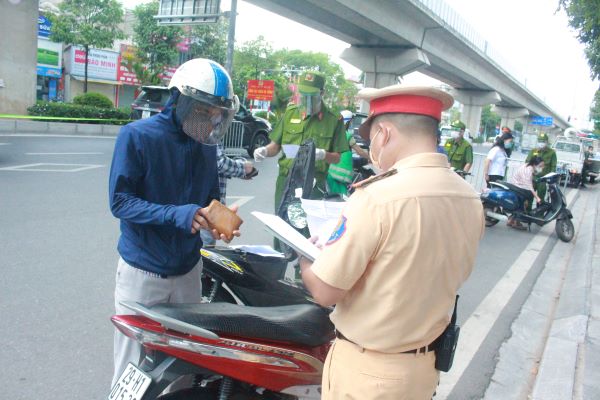 Lực lượng chức năng kiểm tra giấy đi đường.
