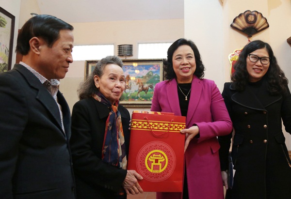 Lãnh đạo Tp Hà Nội tặng quà người có công.