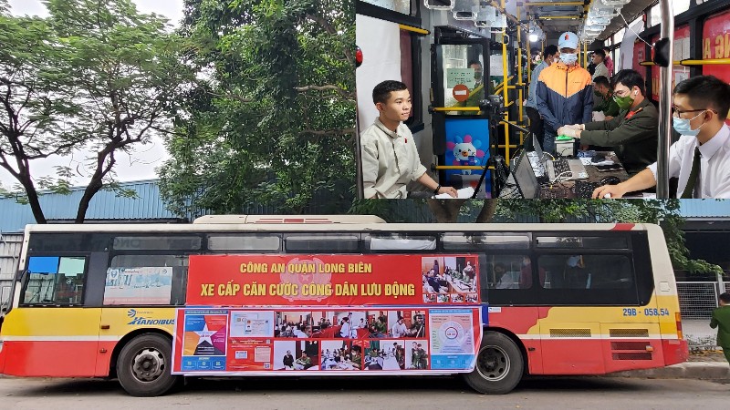 Công an quận Long Biên là đơn vị đầu tiên trong toàn Thành phố áp dụng việc sử dụng xe buýt để cấp căn cước công dân lưu động. Trên xe buýt cũng có dán mã QR code để người dân khai báo di chuyển nội địa trên app VNEID của Bộ Công an, phục vụ công tác truy vết F0, F1.