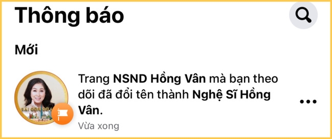 Thông báo về việc đổi tên fanpage của NSND Hồng Vân khiến khán giả hoang mang.