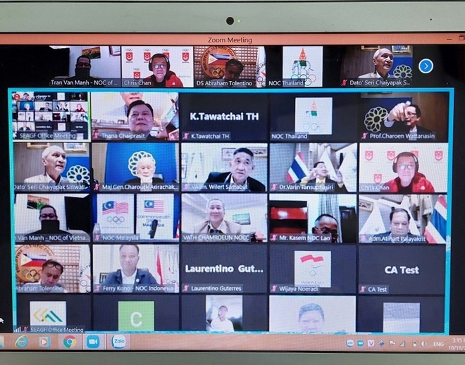 Các thành viên tham dự cuộc họp Văn phòng SEAGF ngày 18/10. Ảnh: BTC