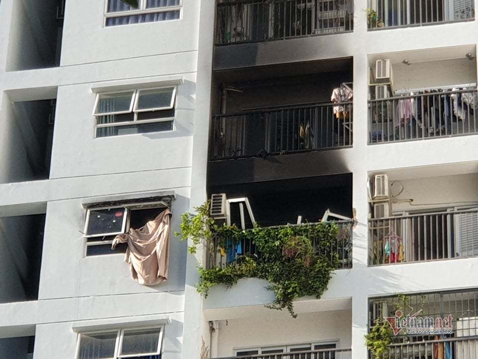 Vụ hỏa hoạn làm nhiều tài sản bên trong căn hộ ở tầng 10 bị hư hại nặng. Hai căn hộ liền kề nơi xảy ra hỏa hoạn bị ảnh hưởng, tường ám khói đen.