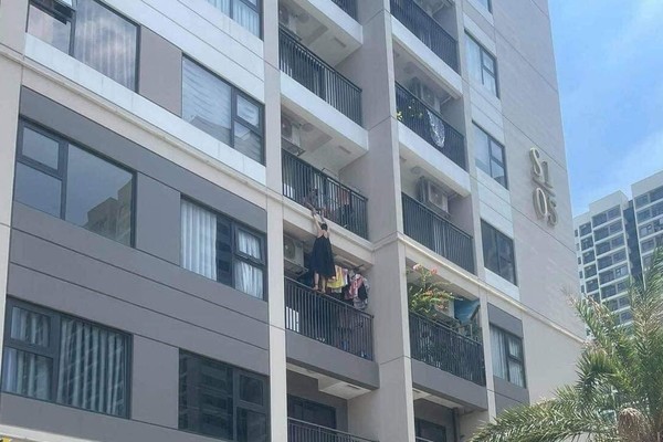 Người phụ nữ trèo ra ban công chung cư (Ảnh vietnamnet.vn)