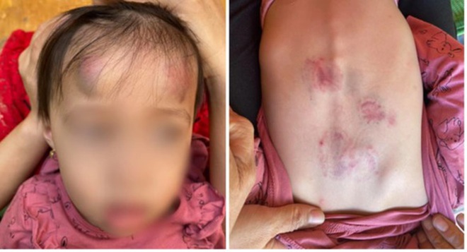 Hình ảnh bé mầm non bị đánh thâm tím được đăng tải trên mạng xã hội.