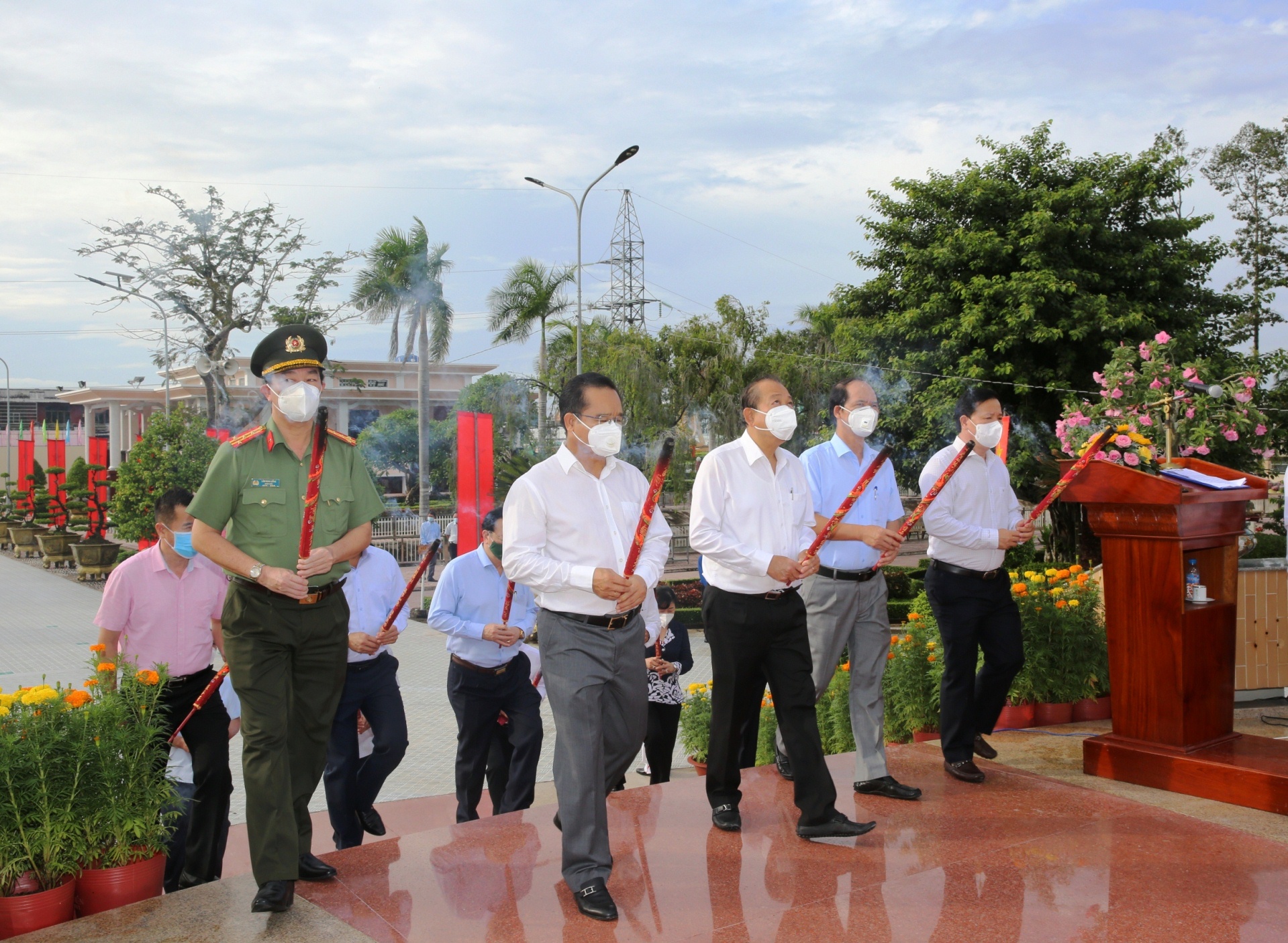 Trong không khí trang nghiêm, Phó Thủ tướng Thường trực Chính phủ Trương Hòa Bình cùng các đồng chí lãnh đạo bộ, ngành và tỉnh Long An đã dâng hương và đặt vòng hoa tại Đài Tưởng niệm; kính cẩn dành phút mặc niệm tưởng nhớ công ơn của các anh hùng liệt sĩ, những người con ưu tú của dân tộc đã không tiếc máu xương, chiến đấu anh dũng, hy sinh vì độc lập, tự do của Tổ quốc.