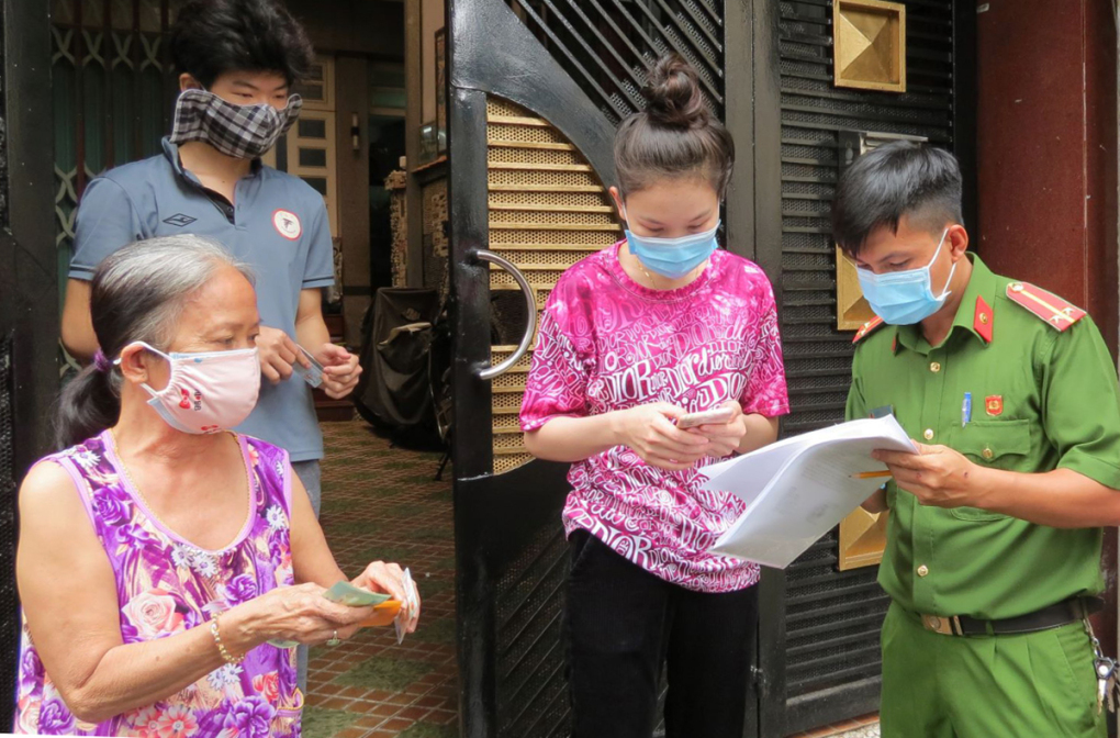 Công an phường 14 (quận Gò Vấp) đối chiếu thông tin khi chi hỗ trợ đợt 3, ngày 30/9 (Ảnh: vnexpress.net).