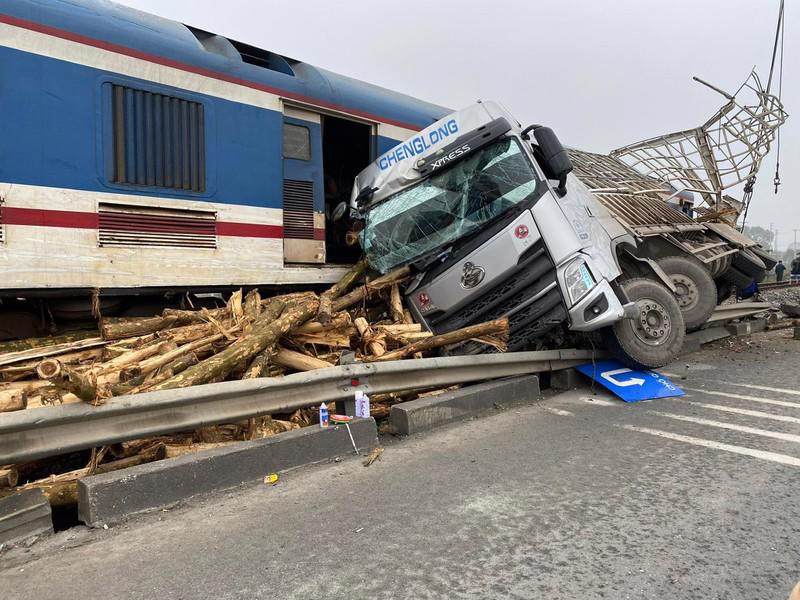 Tai nạn đoàn tàu Bắc - Nam lật ngang vì đâm vào xe ô tô tải
