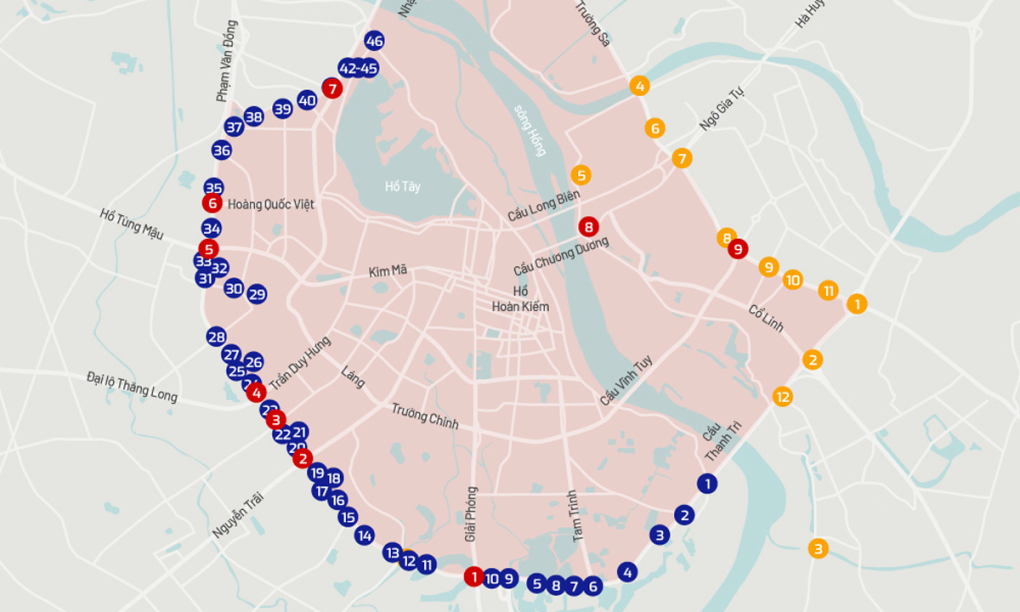 Vị trí dự kiến 87 trạm thu phí ôtô vào nội đô Hà Nội. Đồ hoạ: Tiến Thành.