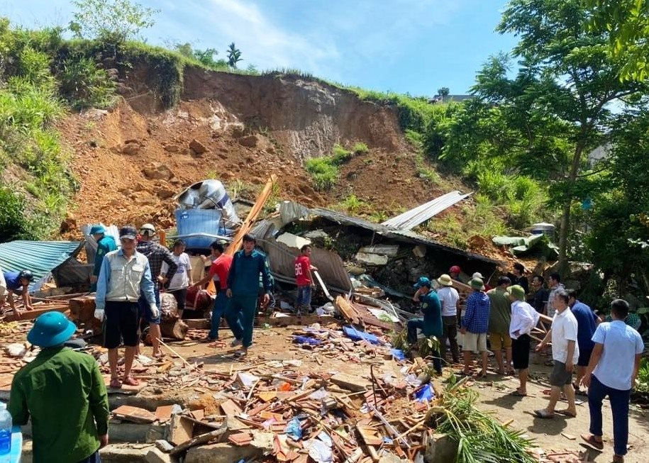 Sạt lở nhà dân khiến 3 người mắc kẹt