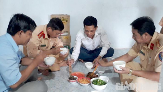 Bữa cơm được người dân chuẩn bị cho các chiến sĩ CSGT bám chốt (Ảnh baogiaothong.vn).