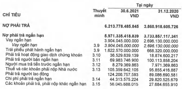 Ghi nhận trên BCTC bán niên soát xét, hiện dư nợ trái phiếu đang vào mức 1.622,5 tỷ đồng, chiếm 26% tổng dư nợ ngắn hạn và tăng đột biến 149% so với đầu kỳ.