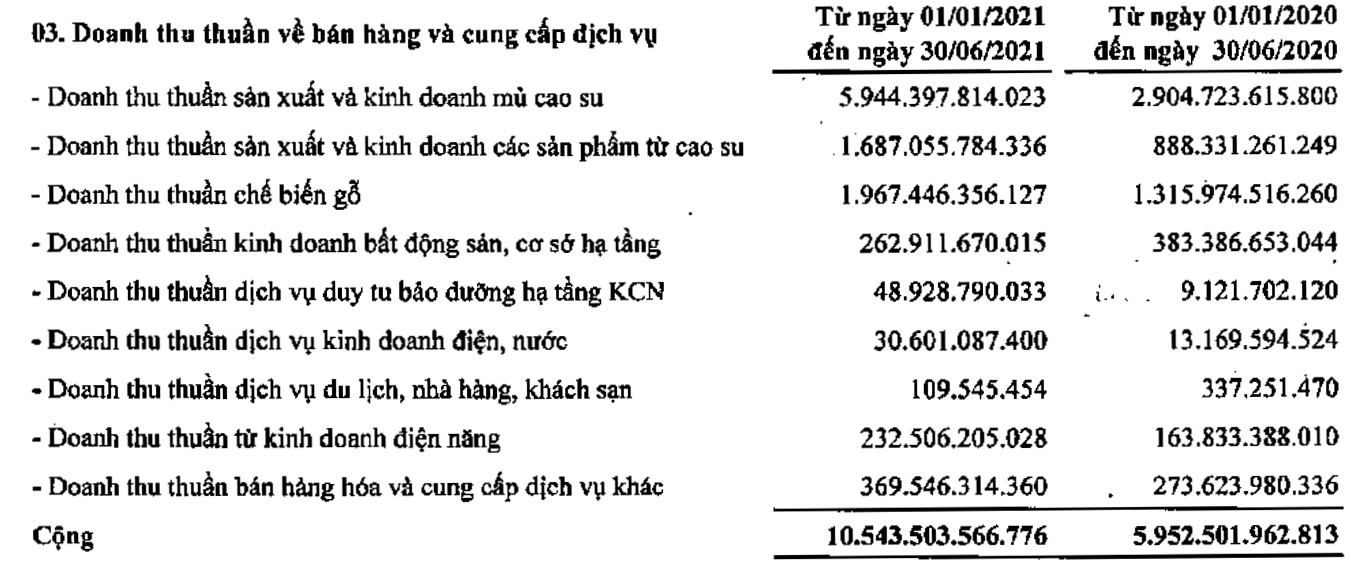 Cụ thể, doanh thu thuần của Tập đoàn này đạt hơn 10.500 tỷ đồng trong nửa đầu năm nay; trong đó, riêng mảng sản xuất và kinh doanh mủ cao su là hơn 5.944 tỷ đồng, gần bằng với doanh thu thuần của VRG trong 6 tháng đầu năm 2020.