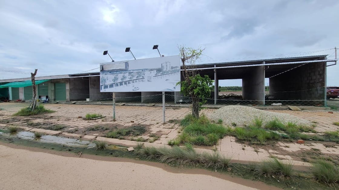 Công trình gồm 13 căn nhà tiền chế liền kề, có chiều ngang 52m, chiều dài 16m, được chia nhỏ theo kiểu phân lô. Công trình đã đổ đà kiềng bê tông cốt thép, kết cấu khung sườn thép hộp, tường xây gạch bao quanh cao 3m, đã làm nền, lợp mái.