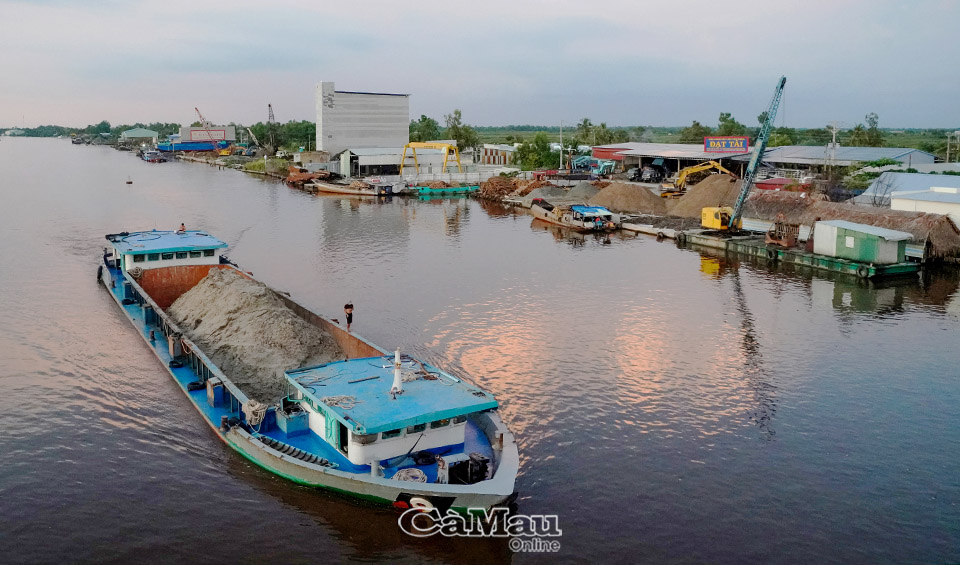 Những chiếc sà lan vận chuyển cát từ vùng trên về xứ Cà Mau qua đường sông Ông Đốc.