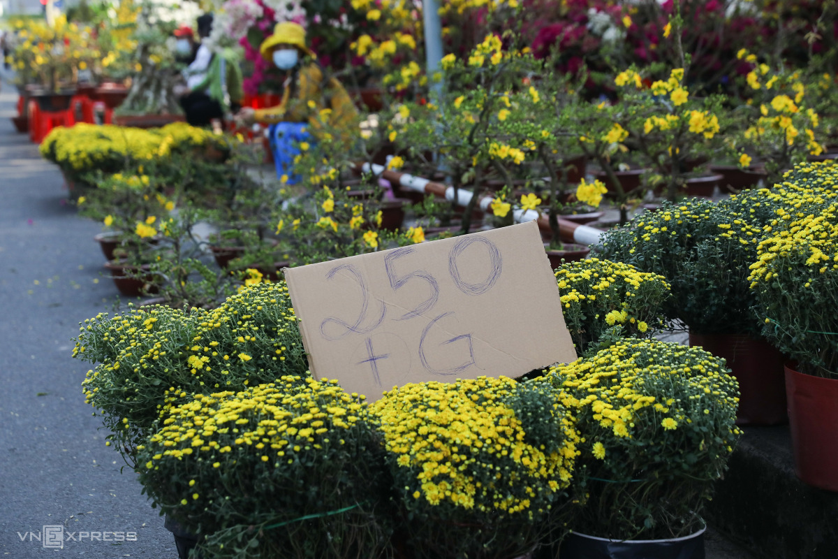 10h, những chậu cúc mâm xôi được bán đồng giá 250.000 đồng thay vì giá 400.000 đồng lúc đầu.