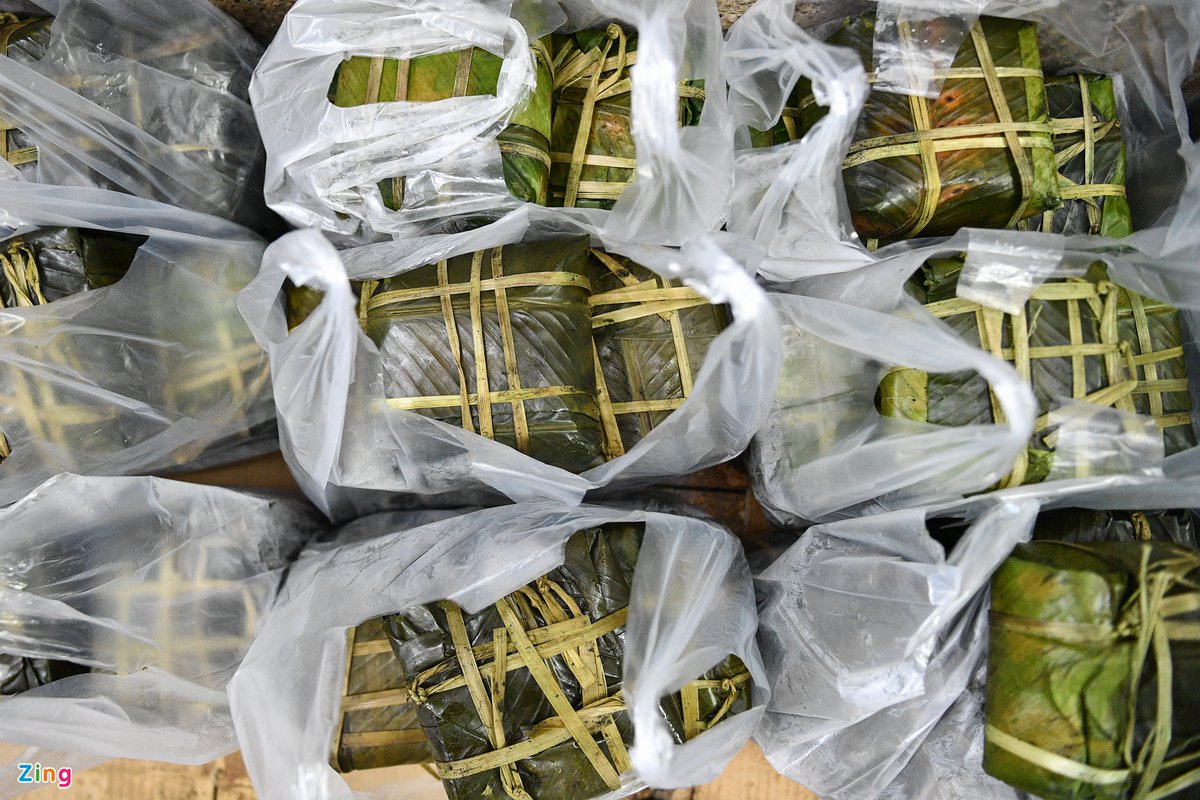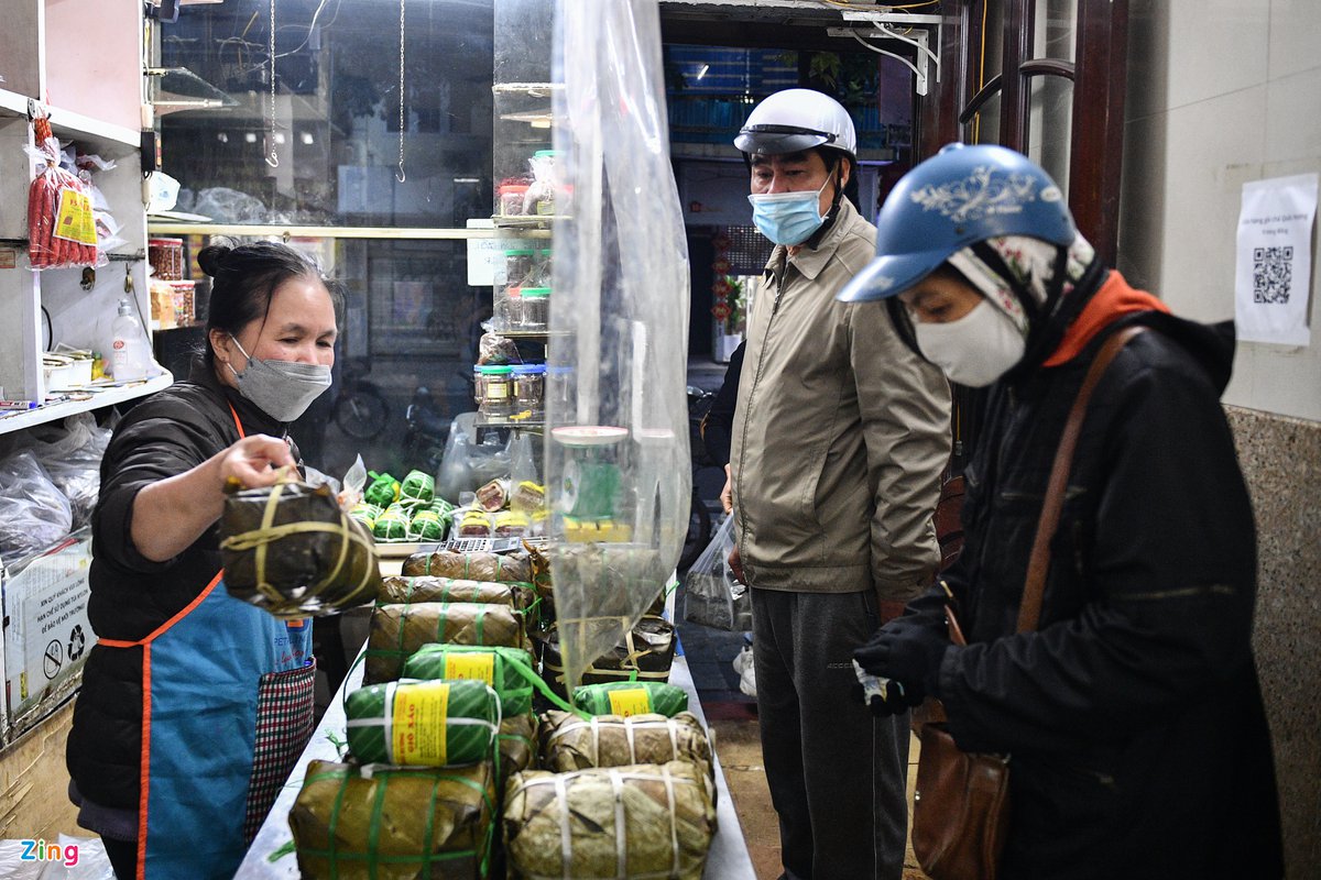 6h sáng 29 Tết, cửa hàng bánh chưng, giò chả trên phố Hàng Bông (quận Hoàn Kiếm) chuẩn bị 500 chiếc để bán cho những vị khách cuối cùng trước khi bước sang năm mới.