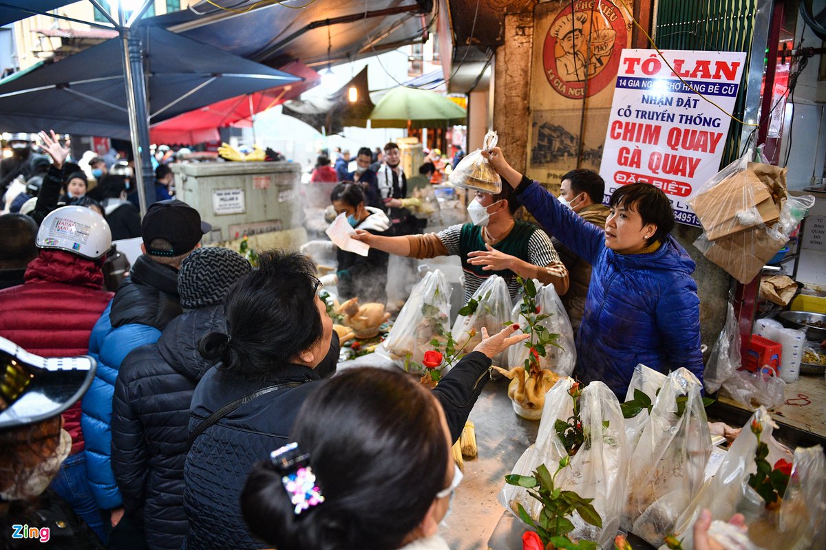Theo zingnews.vn Người dân thủ đô tranh thủ mua bánh chưng, gà luộc để cúng tất niên. Chợ Hàng Bè (Hoàn Kiếm, Hà Nội) đông đúc từ sáng tới trưa.