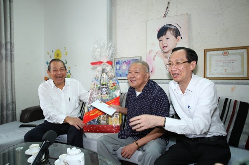 | Phó Thủ tướng thăm cụ Trần Hoài Hơ. - Ảnh: VGP/Lê Sơn |