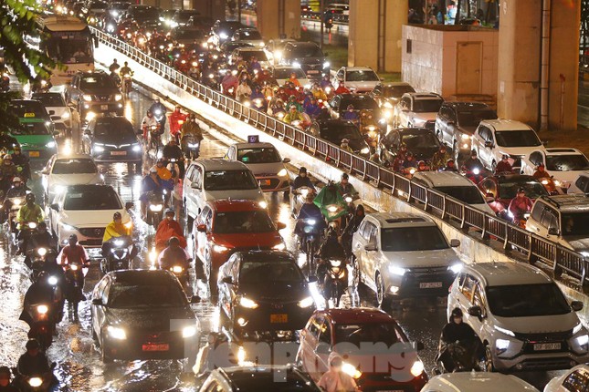 Ùn tắc dưới cơn mưa lớn. Ảnh: tienphong.vn