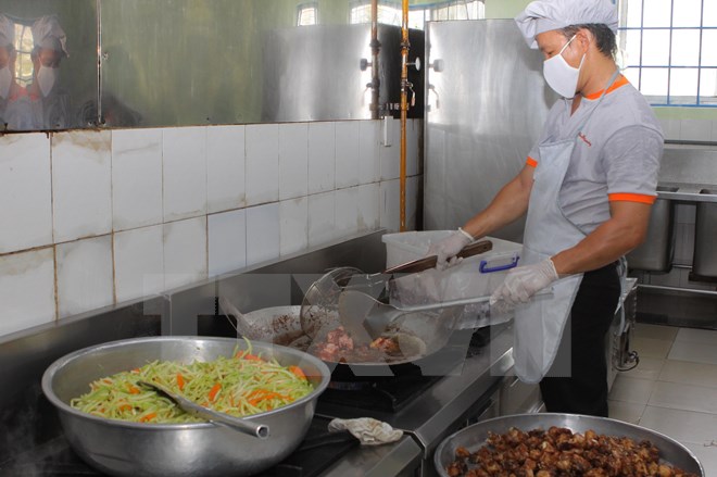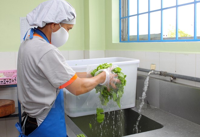 Đảm bảo vệ sinh an toàn thực phẩm trong mọi khâu chế biến thức ăn. (Ảnh: Phương Vy/TTXVN |