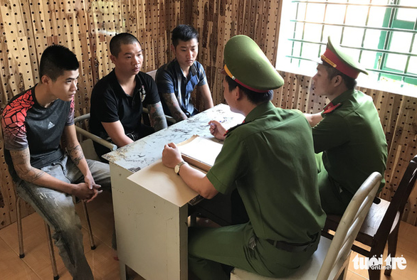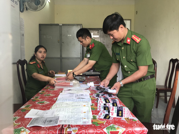 | Nhóm tín dụng đen tại cơ quan công an - Ảnh: LINH ĐAN |