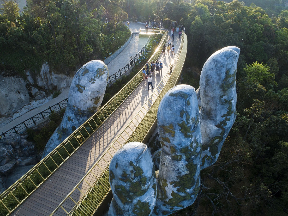 Ngay từ khi xuất hiện, Cầu Vàng đã khơi gợi cảm hứng nghệ thuật cho nhiều tay săn ảnh. Những bức hình đẹp về chiếc cầu “kì lạ” này xuất hiện dày đặc trên các trang mạng xã hội với các góc khác nhau, mang lại những cảm xúc tuyệt diệu cho người xem. Ví như bức hình này của tác giả Huy Khâm “bắt” được khoảnh khắc có 1 không 2 ở Cầu Vàng, đã được nhiều người cùng share để chiêm ngưỡng.