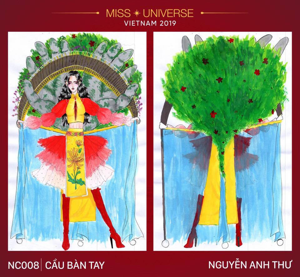 Tác giả của của “Nàng Hill” cho biết, lí do lựa chọn hình ảnh cây cầu nổi tiếng này để thực hiện bài dự thi của mình là bởi Cầu Vàng là điểm đến du lịch nổi tiếng của Việt Nam trong năm vừa qua, không chỉ là niềm tự hào của người dân Đà Nẵng mà đây còn là công trình kiến trúc vươn tầm thế giới, khẳng định trí óc sáng tạo của người Việt Nam. Thiết kế váy độc đáo với cảm hứng từ Cầu Vàng đã nhanh chóng được nhận được nhiều “like” từ khán giả và được dự báo sẽ làm “nên chuyện” tại cuộc thi.