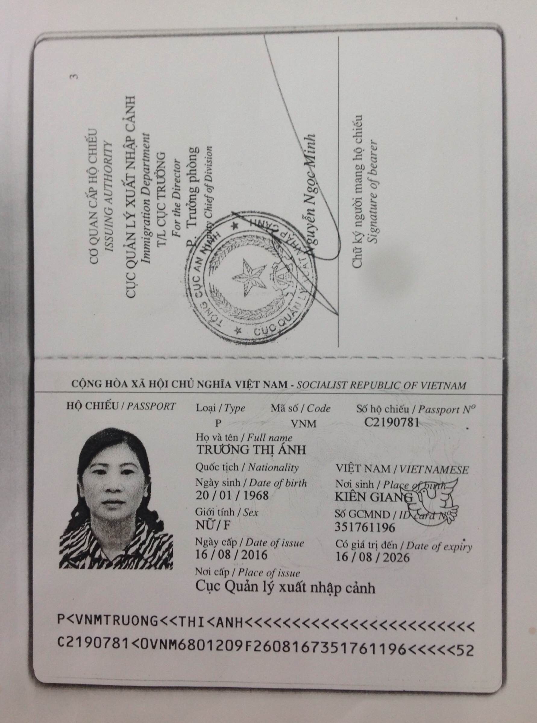 Ảnh và hộ chiếu nữ lao động Trương Thị Ánh bị coi là đã chết do bị ngã vào ngày 11/10/2017