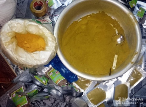 Lực lượng chức năng còn thu giữ được 160 vỏ và nắp hộp kem dưỡng thể Hazeline loại 370ml/hộp đã qua sử dụng và 5,8kg bột màu vàng đậm; 26kg bột màu xanh; 20 kg bột màu vàng nhạt là nguyên liệu chế biến các loại mỹ phẩm.
