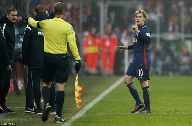Chưa dừng ở đó, Bayern còn được hưởng lợi thế về quân số sau khi Forsberg nhận thẻ đỏ trực tiếp sau pha vào bóng từ đằng sau với Philipp Lahm.