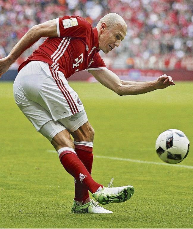 | Hứng khởi khi thi đấu được minh chứng bằng pha tạt bóng của Robben Ảnh firo Sportphoto |