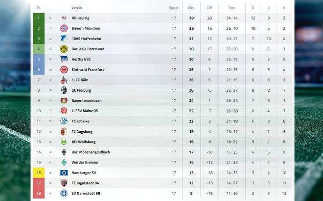 | Bảng xếp hạng BDLG nếu như không có 14 bàn thắng của Lewandowski. (Nguồn: Sport1 |