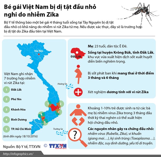 Nếu được xác thực, đây sẽ là trường hợp bị dị tật do Zika đầu tiên tại Việt Nam./.
