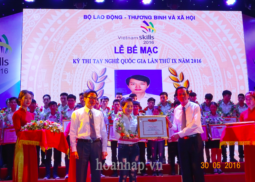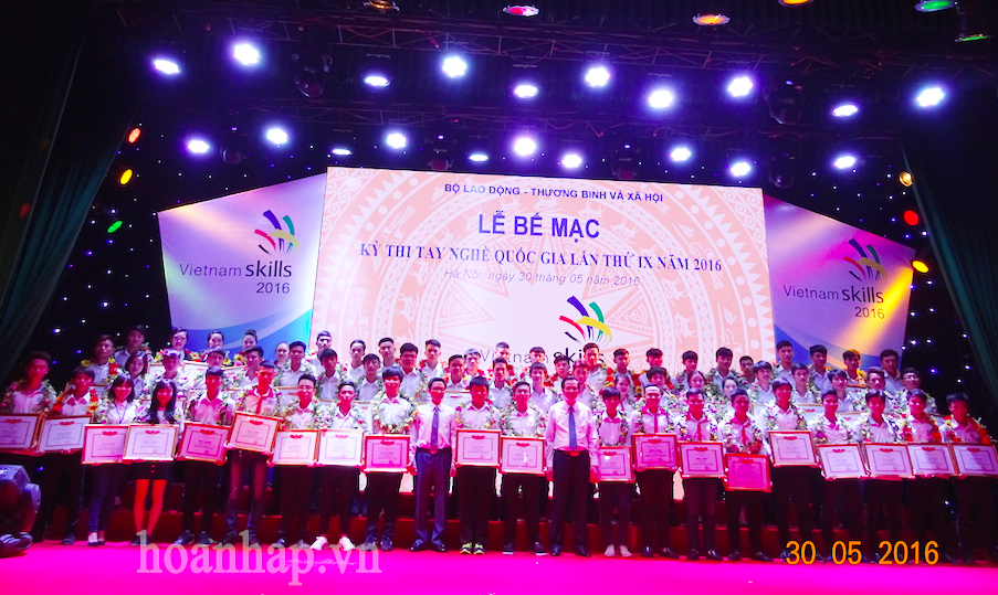 HOANHAP.VN - Tối 30/5/2016, tại Trường Đại học Công nghiệp Hà Nội đã diễn ra Lễ bế mạc Kỳ thi tay nghề quốc gia lần thứ IX, năm 2016. Sau 7 ngày diễn ra tranh tài tại 5 Hội đồng thi cuối cùng đã lựa chọn được 65 thí sinh đạt giải nhất, 24 thí sinh đạt giải nhì, 57 thí sinh đạt giải ba và 221 thí sinh đạt giải khuyến khích. Hà Nội và TP Hồ Chí Minh là hai đoàn đứng đầu có thí sinh đạt giải cao nhất.