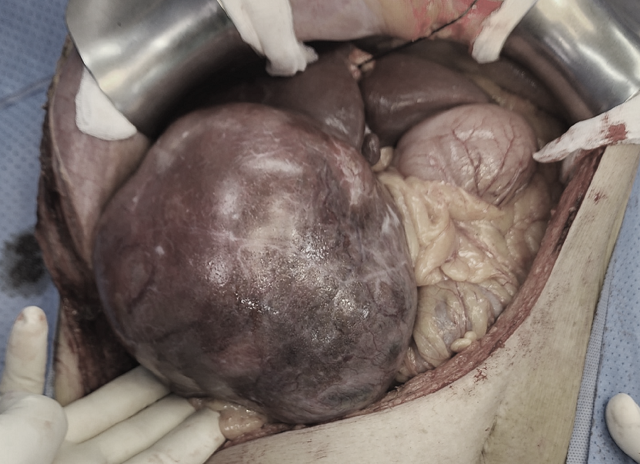 Hình ảnh khối u mang kích thước 15 x 20cm, nặng 1,65kg của bệnh nhân trước khi được cắt rời cơ thể - Ảnh: Bệnh viện Quân y 175.