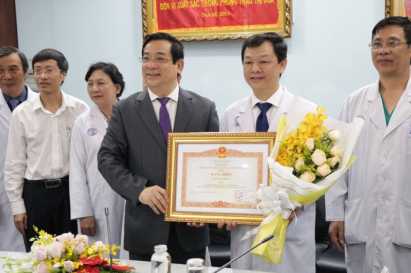 GS Nguyễn Tri Thức - Giám đốc Bệnh viện Chợ Rẫy thay mặt đội ngũ y, bác sĩ nhận bằng khen từ thủ tướng.