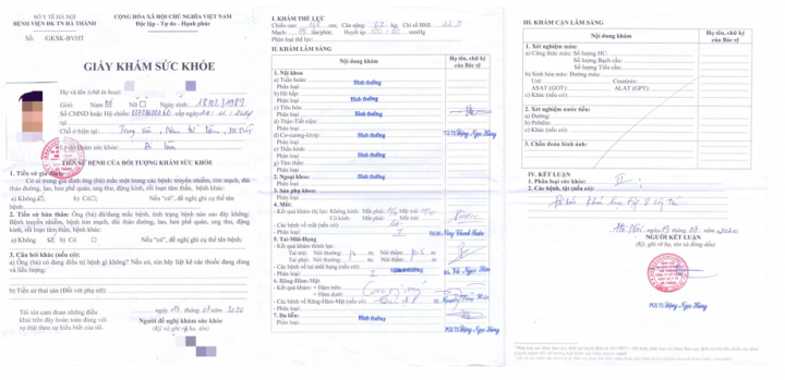 Giấy Khám sức khỏe do bện viện đa khoa Hà Thành cung cấp