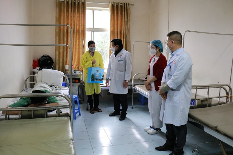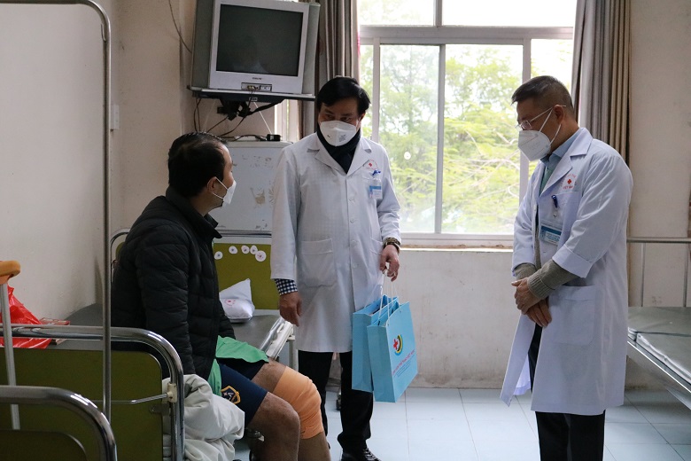 PGS-TS,Bác sỹ. Võ Tường Kha - Giám đốc Bệnh viện Thể thao Việt Nam (đứng giữa) thăm hỏi, tặng quà dịp Tết Qúy Mão 2023 cho bệnh nhân.