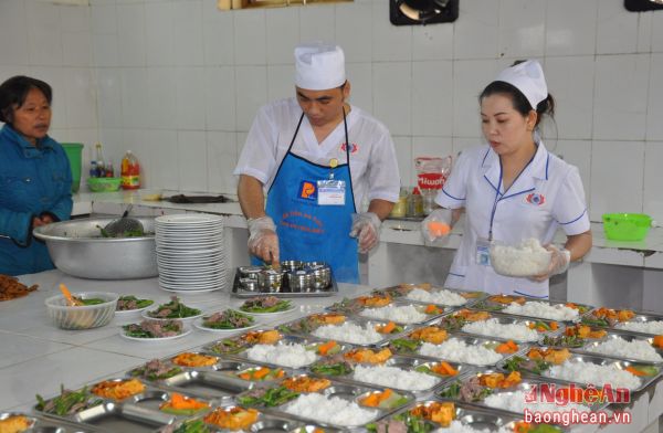 | Bệnh viện Phục hồi chức năng Nghệ An chuẩn bị bữa ăn bảo đảm đủ dinh dưỡng cho bệnh nhân. Ảnh: Báo Nghệ An |